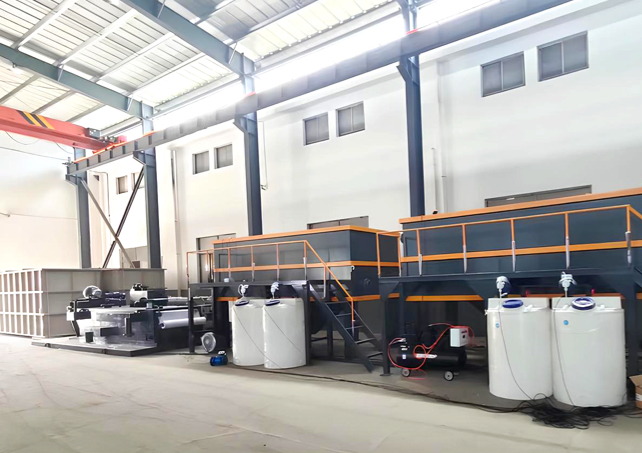 切削液/冷却液经过车间集水沟,进入业主方集水池,在集水池内安装有增氧系统,对水进行增氧,防止切削液发臭。当液位到达预设点时,水泵开始启动,将切削液泵入集中过滤系统,过滤后切削液进入清液池,再由集中供水将过滤后的切削液输送至机床用水点,过滤后的杂质进入接渣小车。